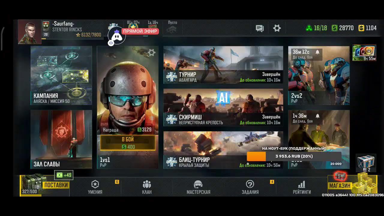 Поддержка автора по ссылке: https://www.donationalerts.com/r/rincks СБЕР 2202 2009 8742 9360 телеграм группа для подписчиков https://t.me/art_of_war_3_rincks_sopra Продлить стрим:300 руб Смена фракции:200 руб Тренировка:300 руб 2х2: по совести Покажи кач: миллион рублей Закончить стрим:1000 руб Так же можно заказать челлендж. тоесть дать стримеру задание за определенную сумму. Например: сыграть только авиацией или вообще без неё,ну и так далее. Ссылка на игру: Долго искал настоящую стратежку на телефон, как старкрафт. Наконец нашел Art of War 3! Очень крутая игра! Вот ссылка, качай, тебе понравится: https://redirect.appmetrica.yandex.com/serve/169878688668608468?recruiter_id=1111515909