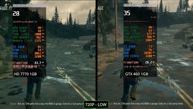 #HD7770vsGTX460 #10GamesTest ------------------------------------------------------------------------ 00:00 INTRO 00:09 SPEC 00:24 GTA V 1:11 FORTNITE 2:13 VALORANT 3:10 RESIDENT EVIL 3 RECOON CITY 4:07 ASSASSIN'S CREED UNITY 4:54 DAYS GONE 5:34 FARCRY 5 6:28 MORTAL KOMBAT 11 7:09 SIFU 7:48 CONTROL 8:18 COD WWII 9:11 DYING LIGHT 2 ------------------------------------------------------------------------ Spec Gpus SPEC GTX 460 1GB GDDR5 HD 7770 1GB GDDR5 Intel core i5-4460 4th generation Recording Msi After Burner 16Gb Ram ddr3 ------------------------------------------------------------------------ JOIN ME ON FB https://www.facebook.com/Sk-Benchmark-100261625075219 _____________----------------------________________ Disclaimer :- These video games are a work of fiction. The vehicles, weapons, fighting, blood, etc. may have been adjusted to fit into these video games. All characters appearing in these games are factious. Any resemblance to real persons, living or dead, is purely coincidental. There is no relation of these video games with real life. All Images, Picture, Music show in the video belongs to the respected owners. Disclaimer: - This channel DOST NOT promotes or encourages any illegal activities and all content provided by this channel is meant for EDUCATIONAL PURPOSE only. Copyright Disclaimer: - Under section 107 of the copyright Act 1976, allowance is mad for FAIR USE for purpose such a as criticism, comment, news reporting, teaching, scholarship and research. Fair use is a use permitted by copyright statues that might otherwise be infringing. Non- Profit, educational or personal use tips the balance in favor of FAIR USE. _______________________________________ Thanks for Watching!