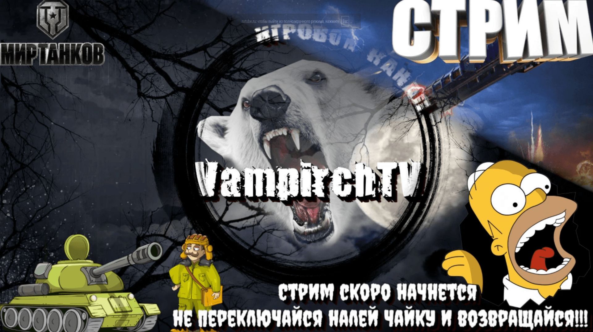 ⭐️Приветствую Вас Танкисты и Танкистки.⭐️ ⭐️Спасибо, что зашли на канал. Поддержи лайком, и подпиской, для тебя это не трудно, а для меня это лучший подарок!!!! 👉 ВАША ПОМОЩЬ В РАЗВИТИИ КАНАЛА✔️ https://www.donationalerts.com/r/vampirchtv 👉 boosty✔️ https://boosty.to/vampirchtvv 👉Расскажите своим друзьям об игре «Мир танков» и играйте вместе!!! https://tanki.su/ru/game/download/ 👉VK Play Live✔️ live.vkplay.ru/vampirchtv 👉YouTube✔️ https://www.youtube.com/@vampirchTV 👉Rutube✔️ rutube.ru/channel/27642037 👉Trovo✔️ https://trovo.live/s/VampirchTV Правила чата и комментариев: ✔️Адекватность и уважение. Самое главное - это относиться друг к другу с элементарным уважением и вести себя адекватно в любой ситуации. ✔️Политика и религия. Две крайне острые темы, которые мы не затрагиваем не в серьёзном ключе, не в шуточном канал и всё вокруг него посвящено творчеству и создано ради получения удовольствия и отдыха. ✔️18+. Все мы люди взрослые и потому иной раз можем обсуждать и шутить на разные темы, в том числе не исключён чёрный юмор или пошлятина. Всё это допустимо в рамках нашего чатика, если оно не нарушает первых двух правил. Так же: 👉STEAM⭐️ https://steamcommunity.com/profiles/76561198036037187 👉Vk Группа⭐️ https://vk.com/club4723323 👉Дискорд⭐️ https://discord.com/channels/936291870634573854/965873761100378112