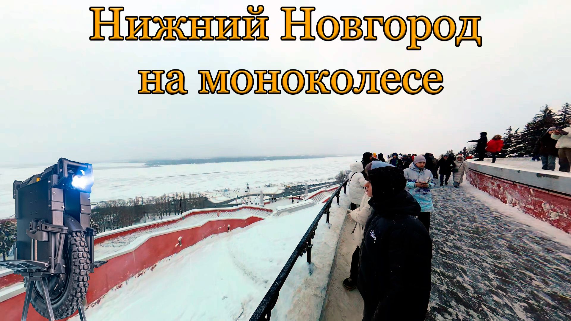 Еду по Нижнему Новгороду на моноколесе зимой на шипованной резине