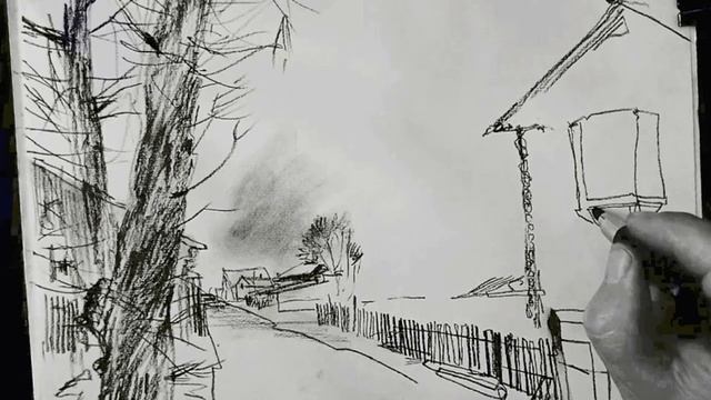 Городская зарисовка по воображению Urbansketching charcoal pencil (real time drawing) 03.09.2022