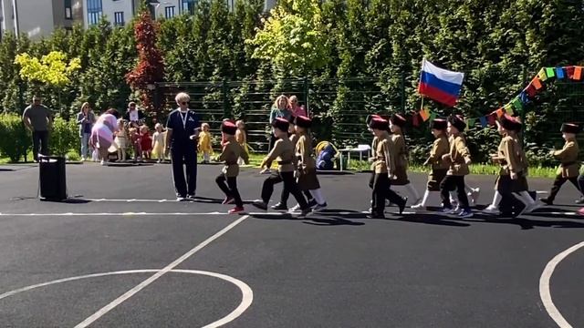 Веселые старты для детей подготовительной к школе группы с участием кадетов Нахимовского училища.