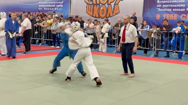 26.01.2025 в Угличе прошло Межрегиональное соревнование по кудо посвященное памяти почетного гражданина Ярославской области Шереметьевой Э.М. Бой в категории 230 ед. 16-17 лет. В синем Егор Захаров (Костромская обл.), в белом Владимир Романец (г. Москва, СК «Прайд»).