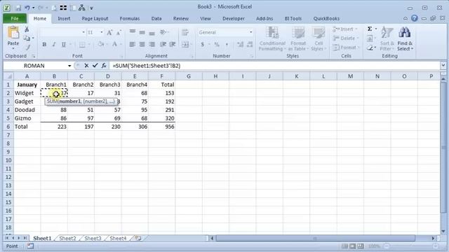 Using Excel's Sum Function Across Multiple Tabs