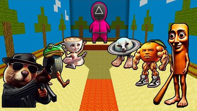 Герои итальянского брейнрота попадают в Minecraft-адаптацию «Игры в кальмара»! Их ждут смертельные испытания, но они не сдадутся без боя. 🐊 Участники: — Bombombini Gusini: Взрывает ловушки динамитом из пасты! — Tung Tung Sahur: Останавливает время своими ритмами, чтобы избежать пуль! — Ballerina Cappuccina: Танцует между летящими стрелами и пилюлями! — Chimpanzini Bananini: Кидается бананами, чтобы отвлечь охранников-големов! ⚔️ Испытания: — Красный свет, зелёный свет: Кукла стреляет не стрелами, а ядовитым томатным соусом! — Сахарные соты: Нужно вырезать фигуры не иглой, а зубами (Bombombini грызёт сахар как орех!). — Стеклянный мост: Но он из блоков слизи — они прыгают, как на батуте! — Командная битва: Мобы против животных — зомби в костюмах охранников! 🔨 Тактики выживания: — Строят укрытия из сыра и пасты! — Используют макароны как верёвки для лазания! — Призывают на помощь Garamara (робота-повара), который бросает в врагов пиццей!
