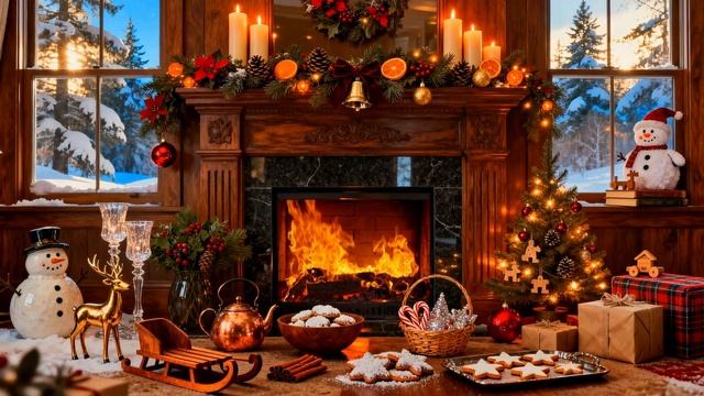 Уютный Зимний Камин. Новогоднее Настроение. Звуки Камина