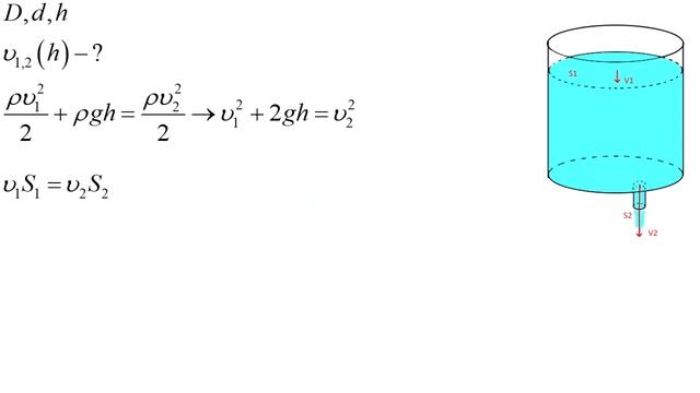 Показано, как зависят скорость истечения жидкости из отверстия на дне бочки и скорость изменения уровня жидкости в бочке от величины этого самого уровня жидкости.