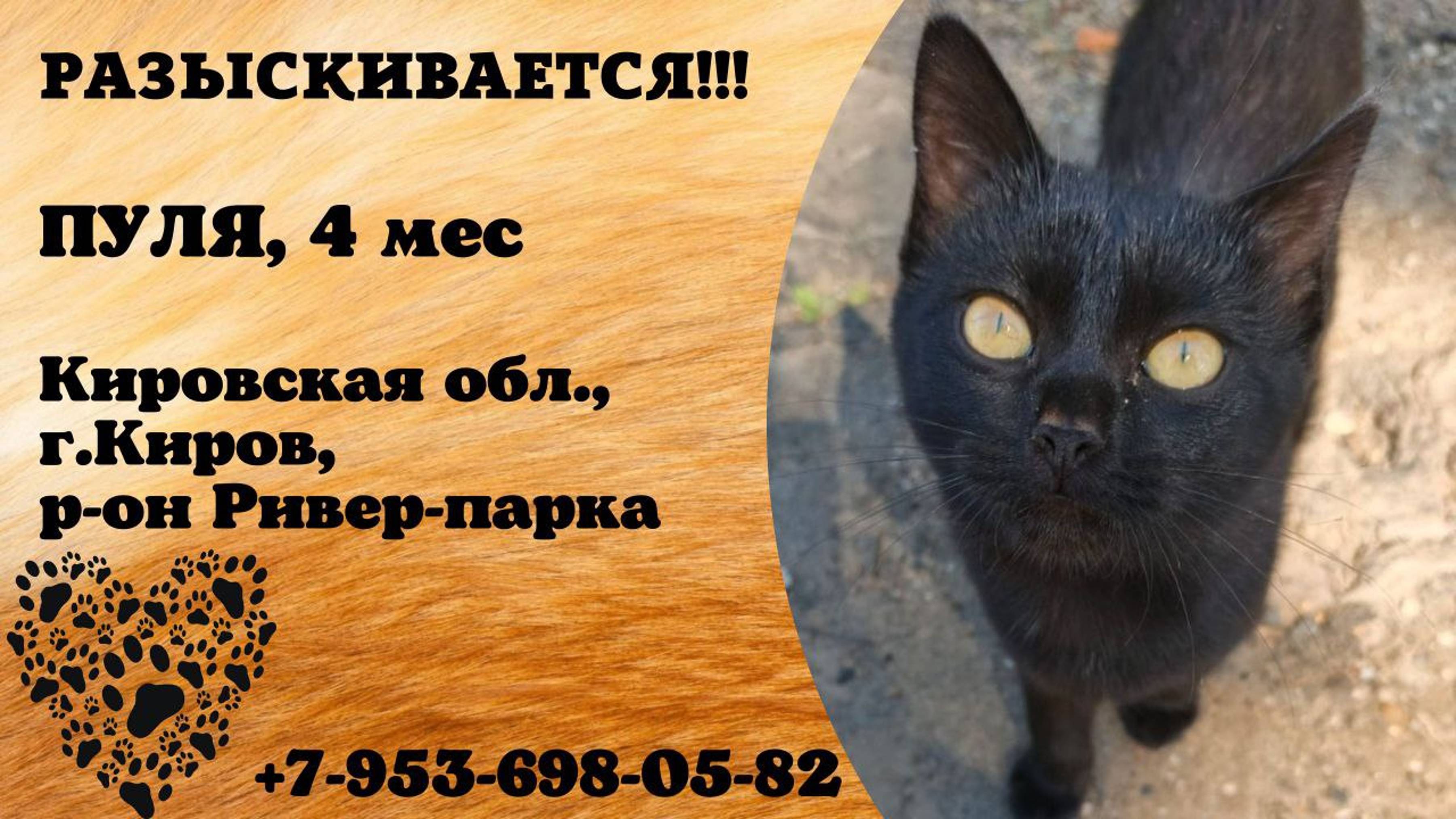Пропала кошка! ПУЛЯ. 4 месяца. Кировская обл, г. Киров