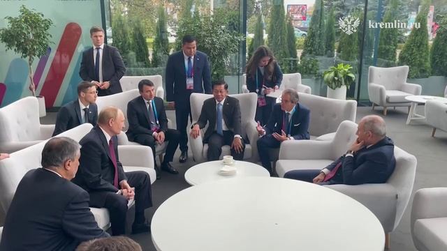 Владимир Путин и главы иностранных делегаций – участники Глобального атомного форума в павильоне «Атом» на ВДНХ: кадры неформального общения