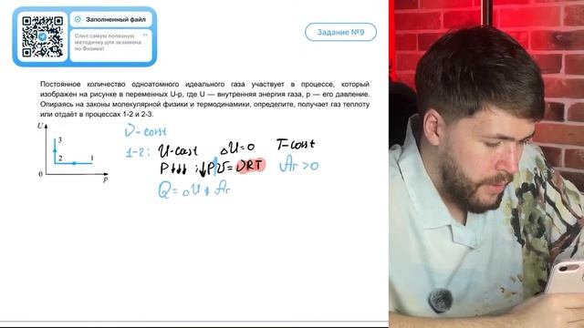 Постоянное количество одноатомного идеального газа участвует в процессе, который изображен н- №41026