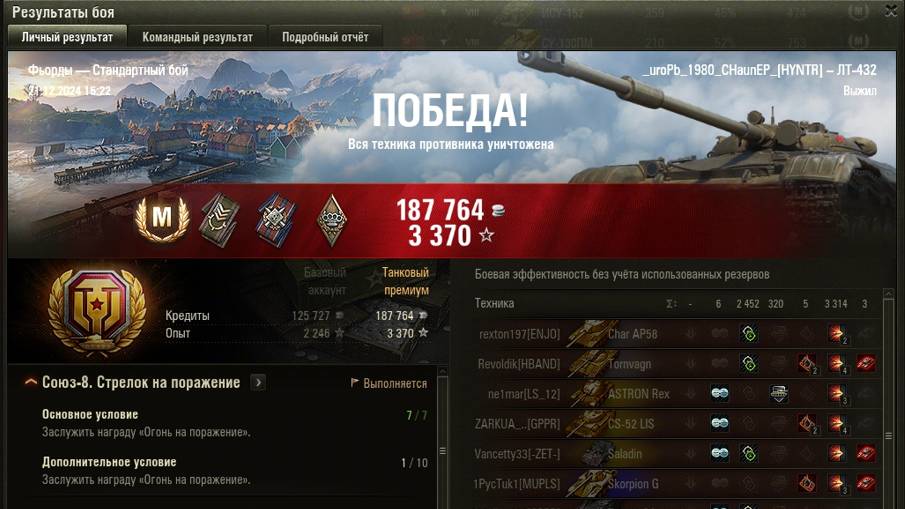 ФЬОРДЫ МАСТЕР на ЛТ-432 ОПЫТ: 1404 СУММАРНЫЙ УРОН: 5766