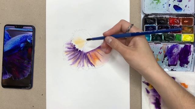 Рисуем рыбу акварелью в ограниченной цветовой гамме