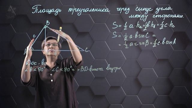 49. Площадь треугольника через синус угла между сторонами. 8 класс