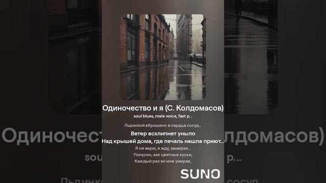 Соул блюз. Текст - С. Колдомасов Аудио и визуал - Suno AI Стихи: Сергей Колдомасов - "Одиночество и я" (2018/10/02) (на сайте стихи.ру). Никакой вульгарщины или пропаганды, все совпадения чисто совпадения!