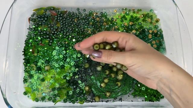 Зеленый слайм 💚 Добавляю в слайм косметику, блестки и