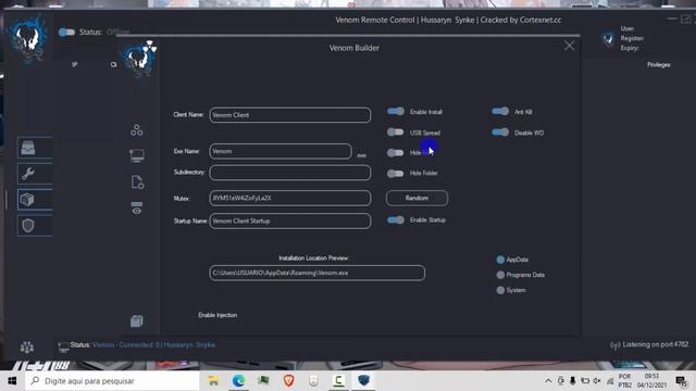 MEIOS DE CONTATO: ---------------- Skype: Fs.MrRbot1 Discord: Kaway#6271 E-mail: cryptersbrasil1@gmail.com Facebook: https://www.facebook.com/fullcryptersoficial SERVIÇOS VIP: ------------ Venda de crypters premium: http://fullcrypters.net/crypter-premium/ Curso de programação crypters (curso modding) http://fullcrypters.net/curso-premium-crypter/ Uma vídeo aula completa de como configurar o servidor do Venom RAT LIFETIME. Download: http://fullcrypters.net/venom-cracked-2-7-0-0-by-snyke/ #VENOMRAT, #VENOMRATCRACKED, #VEMOMCRACK