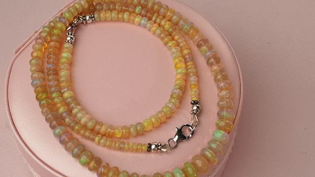 На видео представлены шикарные украшения с природными эфиопскими опалами - колье и браслет. Камни – с чудесной иридизацией, есть красивые переливы цветов в лучах света. Опалы – всегда немного волшебны, их игра завораживает, их можно с восторгом рассматривать – вновь и вновь!