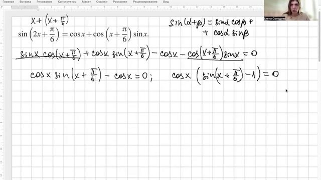 Тригонометрическое уравнение. Синус суммы аргументов.