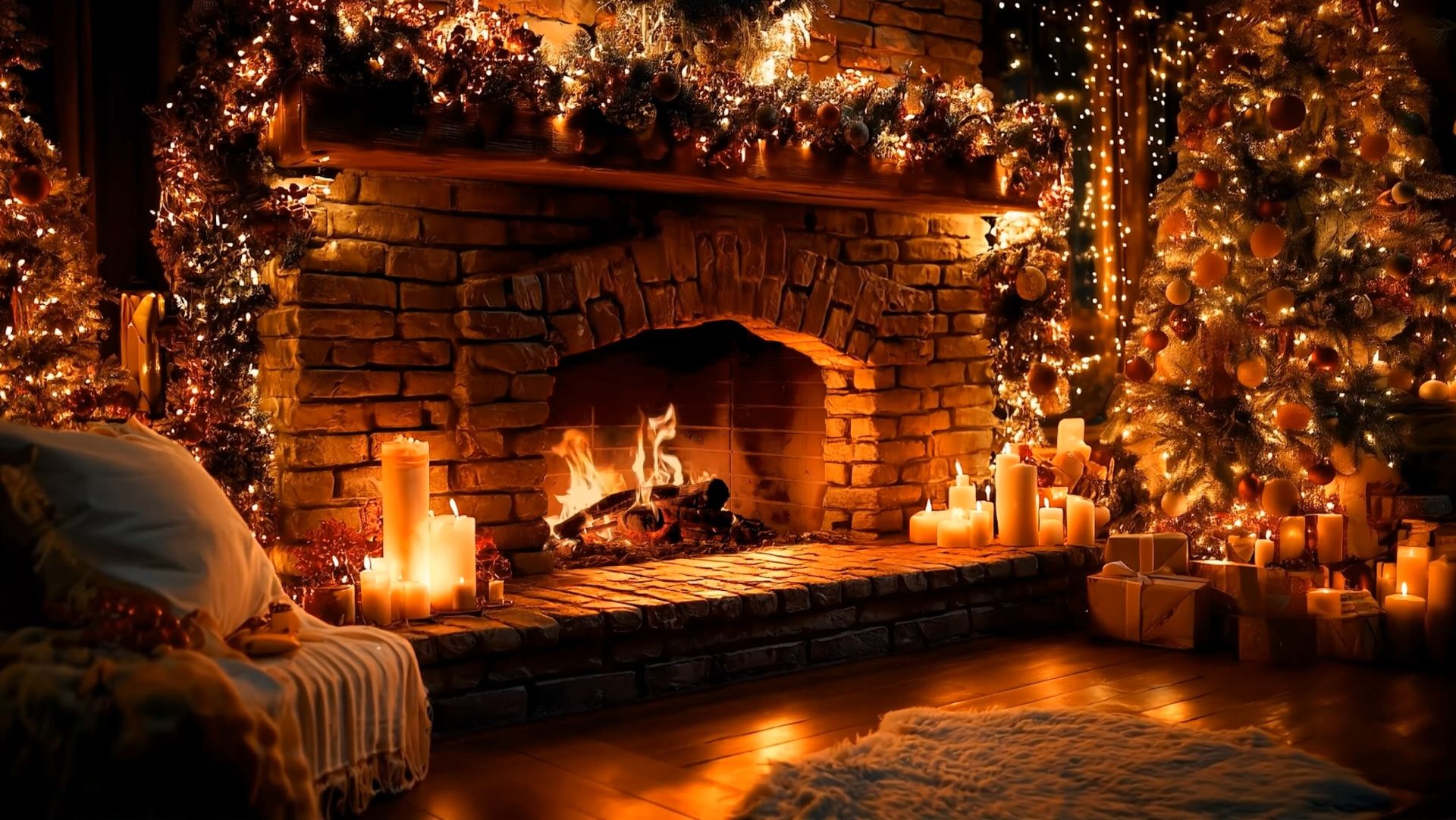 🔥 Новогодний камин со свечами и ёлкой | Теплый Рождественский Камин на фон