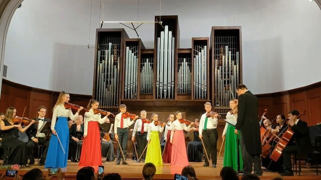 Образцовый ансамбль скрипачей "Весёлый смычок" МБУДО "Детская школа искусств №1 города Ельца" (рук. Прокофьева Ю.Г.) в проекте Художественного руководителя и дирижёра - Заслуженного артиста России Владислава Булахова "Юные таланты России" с Московским камерным оркестром "Времена года" (ГБУК "Москонцерт") в Малом зале Московской государственной консерватории им. П.И. Чайковского 10.12.2022 г. 1. В.А. Моцарт Кончертоне C-dur, 3 часть, Менуэт 2. А. Литвинов "Вечное движение"