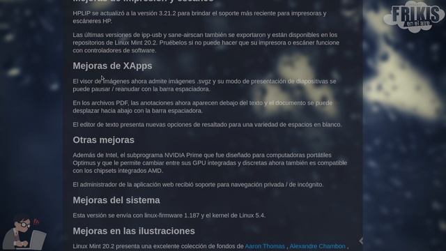 Analizamos las principales características de Linux Mint 20.2, con Cinnamon 5 y cambios en el Update Manager. Twiiter como @frikisenelaire y Facebook Frikis en el aire Web: www.frikisenelaire.com Musica de intro: Enrique Roel