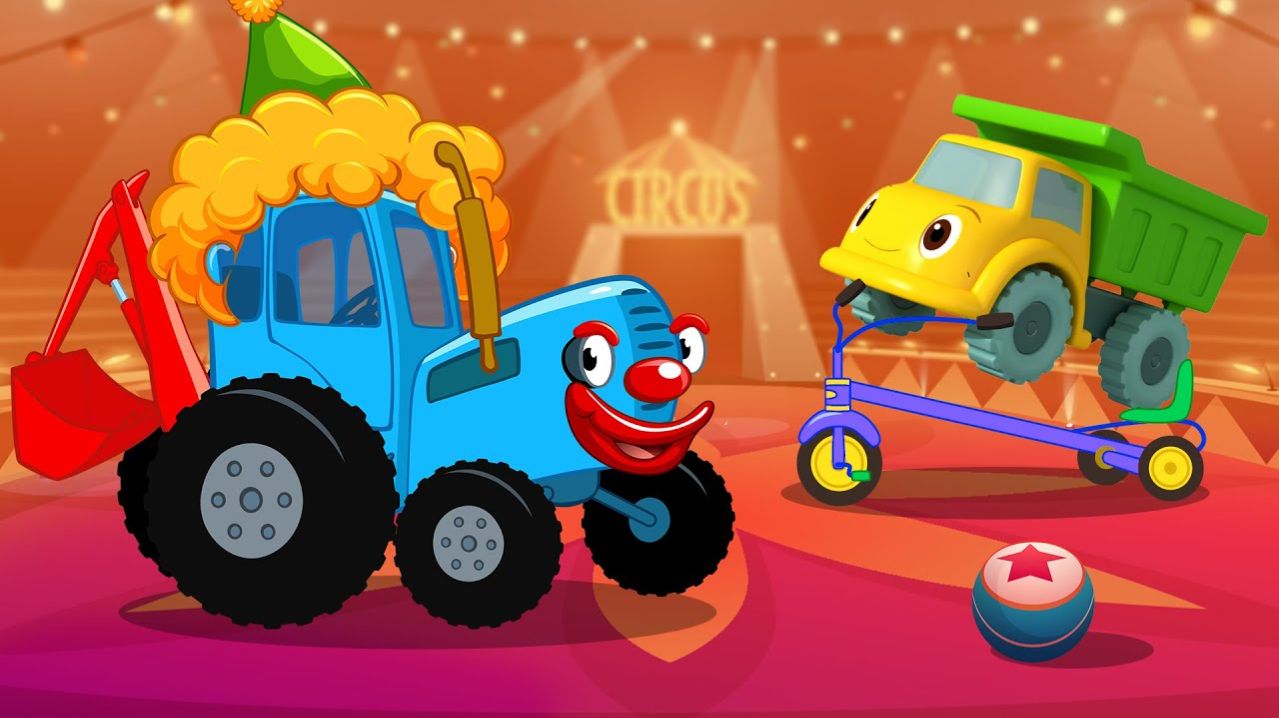 Синий трактор с друзьями в цирк играет Поиграйки с машинками для детей малышей