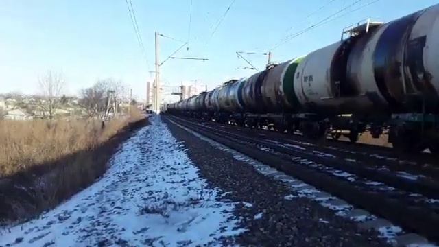 "Тормозит на жёлтый!" 3ЭС5К-601 "Ермак" с наливным поездом и приветливой бригадой.
