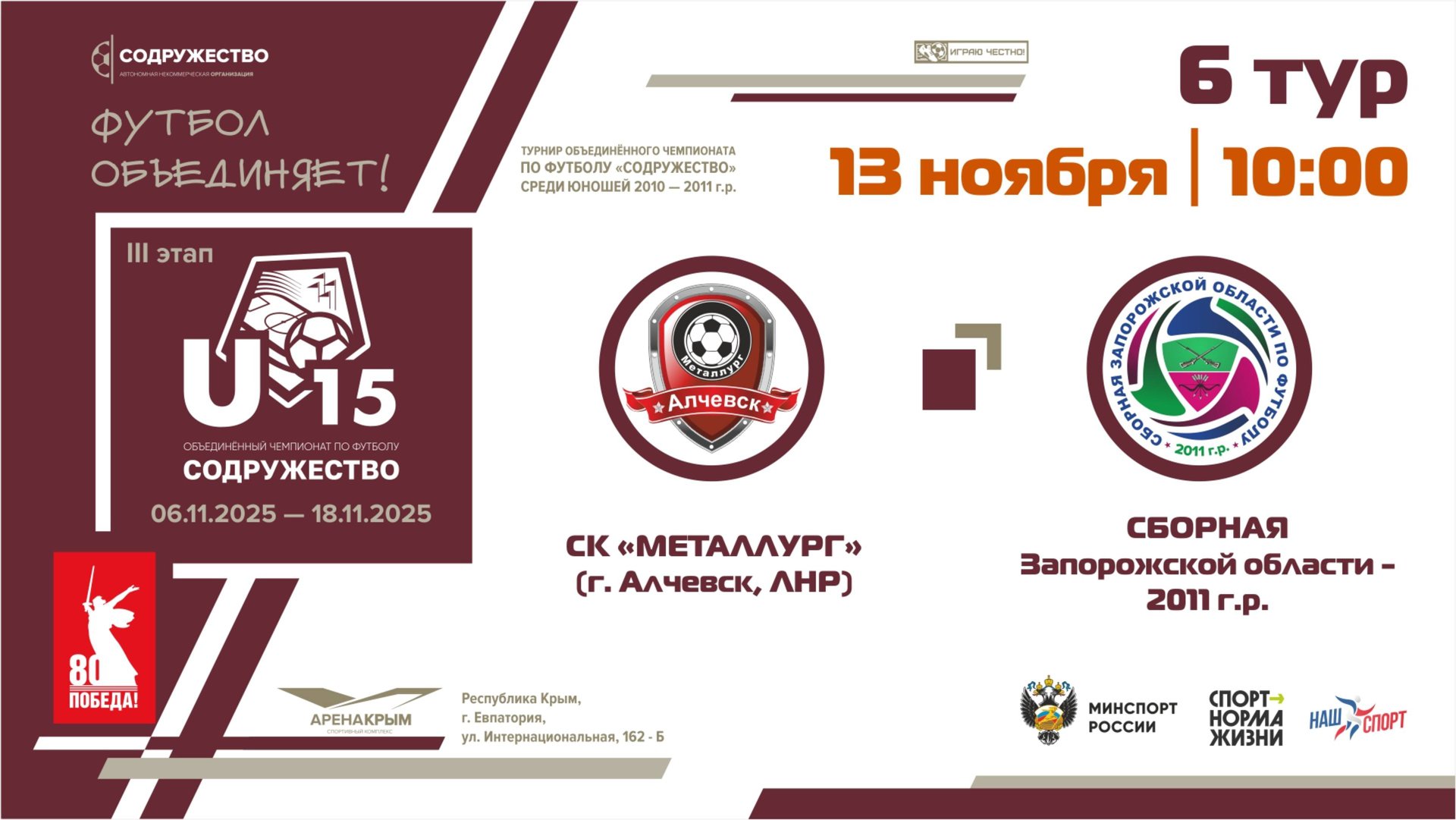 6 ТУР | U-15 | СК "Металлург" (Алчевск, ЛНР) - Сборная Запорожской области 2011 г.р. | 13.11.2025