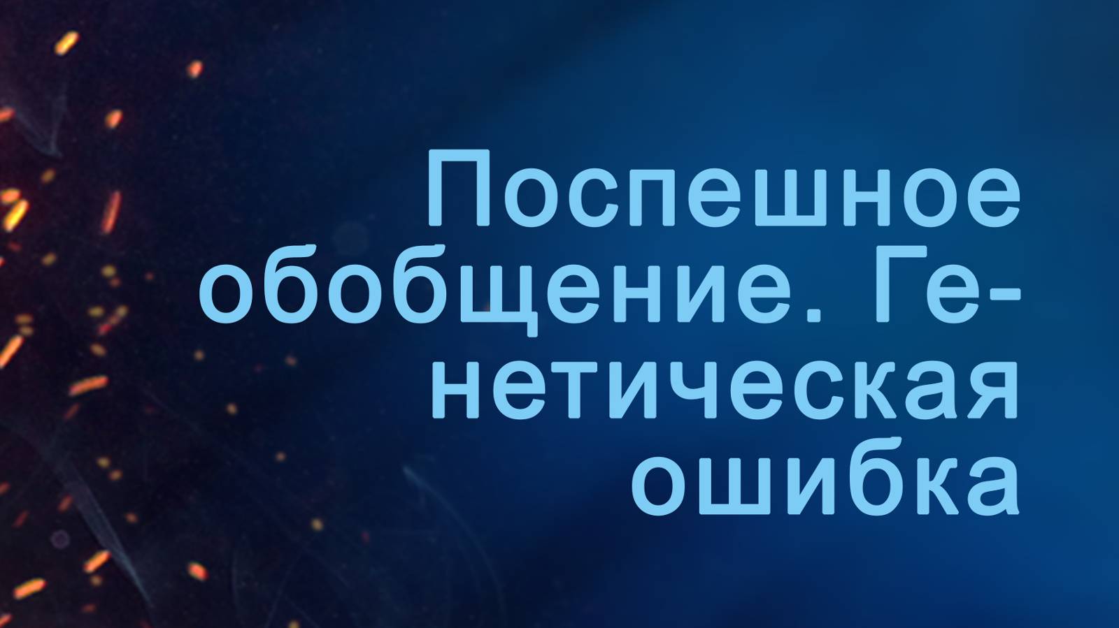 Поспешное обобщение - это типичная ошибка индуктивного аргумента. В этом фрагменте лекции "Христианская апологетика и логика" преподаватель Сергей Головин объясняет суть поспешного обобщения, используя Книгу Судей и 2-ое Послание Петра 2:3 и приводит интересные примеры из науки. Генетическая ошибка - критика источника вместо содержания. Впадая в это заблуждение, мы подвергаем критике не содержание утверждения, а его источник, "переходим на личности". В качестве примера преподаватель приводит слова Нафанаила и Никодима. Пройти онлайн-обучение по этому и другим библейским курсам Вы можете на сайте tvseminary.com