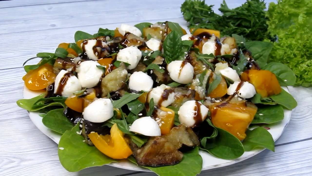 Никогда не остаётся на столе. Он нравится всем! Рецепт: Баклажаны - 1 шт ( 300 гр) Крахмал - 1,5 ст.л Соль - 0,5 ч.л ( для баклажанов) Растительное масло - 2 ст.л Помидоры - 3-4 шт Руккола, шпинат Соус Терияки - по вкусу Сыр Моцарелла - 8-10 шариков Заправка: Растительное масло - 2 ст.л Мёд - 1 ч.л Сок лимона или лайма - 1 ч.л Чеснок - 2 зубчика Вода - 1 ч.л по желанию