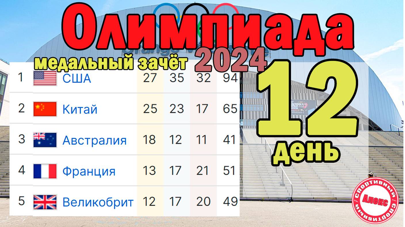 Олимпиада 2024. 12 День. Результаты. Медальный зачёт.