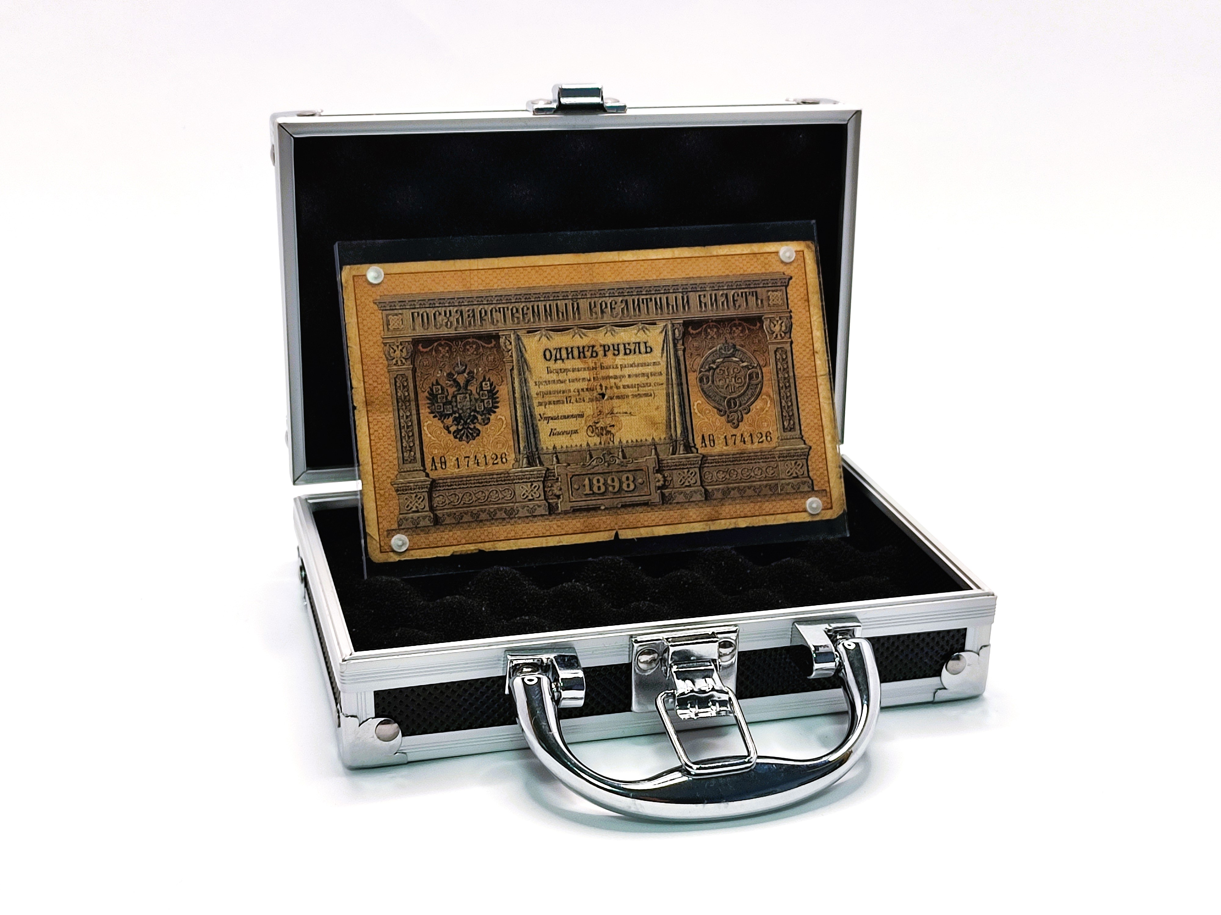 Уникальный "Брутовский рубль": Хранитель Удачи / Оберег. Уважаемые коллекционеры если Вы ищете просто коллекционный материал, то этот государственный кредитный билет образца 1898 года достоинством в один рубль не для Вас. Данная банкнота исключительно для людей искренне верящих в силу удачи. Это не просто материальное достояние со столетней историей, но и ценный артефакт приносящий удачу владельцу. К этому чудодейственному рублю, точно он обладает магнетической силой, липнут и пристают другие рубли – обыкновенные, – бумажка за бумажкой. Сотки, двушки, пятерки, беленькие, зелёненькие, синенькие, рыженькие и т.д., и т.д. … О его чудодейственном свойстве знали еще с 1914 года. О нем писали в газетах, книгах, слагали стихи. Один рубль Управляющий: Плеске, Кассир: Брут, АО 174126 представлен в эксклюзивной упаковке: Маленький изящный металлический кейс, с гербом Российской Империи на крышке. Банкнота, находится между двумя листами оргстекла соединяемых магнитами, покоится на поролоновых ложементах и обернута в черный бархат. Все это придает данному предмету поистине Имперское величие. В комплекте с этим удивительным объектом истории — краткое описание происхождения. Банкнота сохранила следы характерных сгибов, в восемь раз, именно так данные рубли складывали, что бы привлечь удачу. Коллекционеры даже через 100 лет! — оценивают кредитный билет 1 рубль с подписью кассира Госбанка С.А.Брута значительно выше прочих царских билетов данного номинала. Даже те, кто не верит в удачу, находят в этой уникальной банкноте что-то возвышенное. Возможно, царские рубли, подписанные кассиром Государственного банка Российской империи С.А.Брутом, и по сию пору остаются хранителями удачи. У Вас есть уникальная возможность проверить это лично! Полное описание: https://vk.com/@poshoppim-hranitel-udachi-obereg