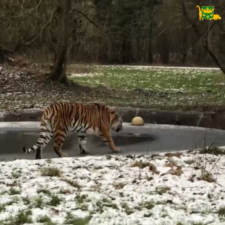 Амурский тигр из заповедника в Дании решил прогуляться по тонкому льду на пруду. Не вышло. #тигр #фейл #неудача #лед