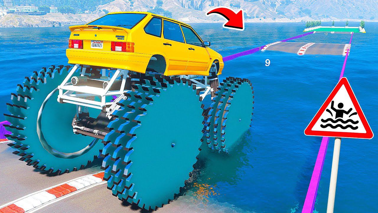 СМОЖЕТ ЛИ ГИГАНТСКАЯ ВАЗ 2114 С ПИЛАМИ ПРОЕХАТЬ ГЛУБОКУЮ ЯМУ С ВОДОЙ ГТА 5 - ЭКСПЕРИМЕНТЫ GTA 5 MODS