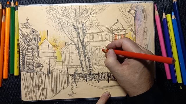 11.11.2023/1 Городская зарисовка на пленэре Цветные карандаши