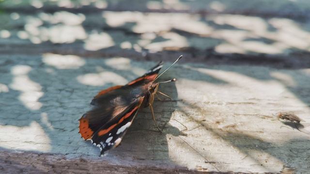 Бабочка Адмирал и муха