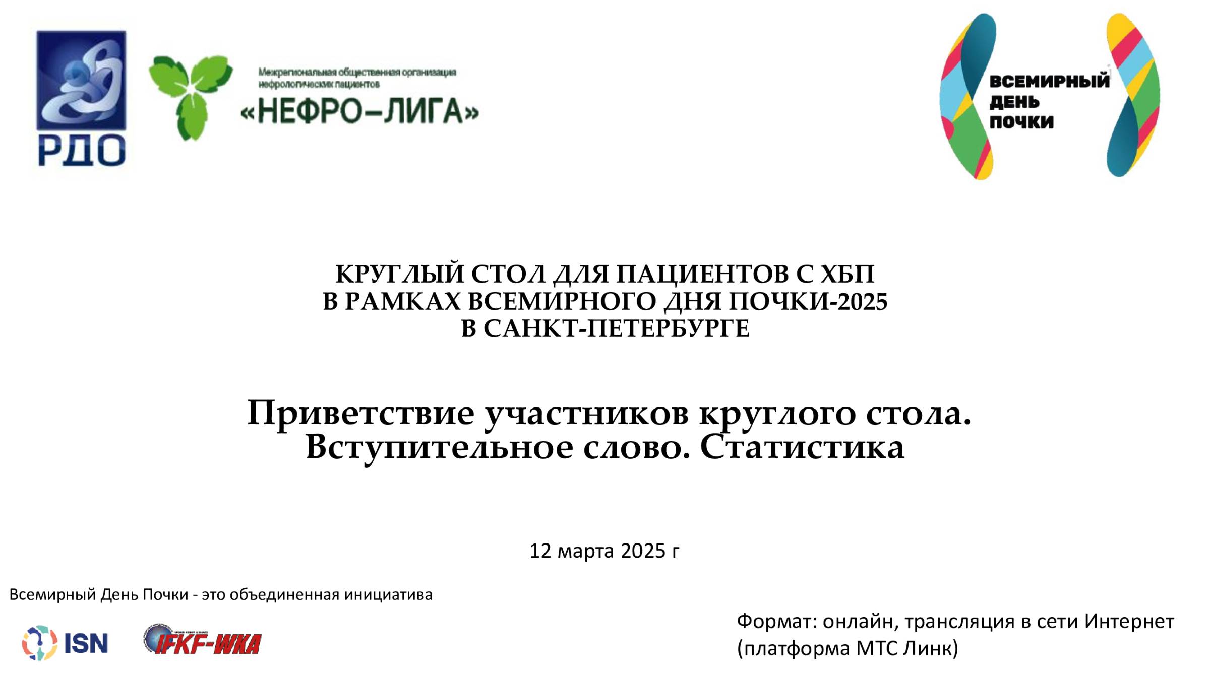 Круглый стол для пациентов с ХБП 2025 Горецкая Галина Романовна, Председатель Правления МООНП "НЕФРО-ЛИГА" Василевич Ирина Юрьевна, президент регионального отделения МООНП "НЕФРО-ЛИГА" Санкт-Петербурга и Ленинградской области Паршина Екатерина Викторовна и Вишневский Константин Александрович – заместители председателя Российского Диализного Общества Алиева Джамиля, Председатель фонда помощи детям с онкологическими и другими тяжелыми заболеваниями "Настенька" Нас можно найти: Сайт ‒ https://nephroliga.ru/ ------------------------------------------------------------------------------------------------- VK ‒ https://vk.com/nephroliga ------------------------------------------------------------------------------------------------- Telegram ‒ https://t.me/nephroliga ------------------------------------------------------------------------------------------------- Трансплантация? Я – за! ‒ https://donor4life.ru/ ------------------------------------------------------------------------------------------------- TransplantNet ‒ https://xn--80aa6ahcjekfi.net/info ------------------------------------------------------------------------------------------------- Яндекс Дзен ‒ https://zen.yandex.ru/id/610fe67aa9cf... ------------------------------------------------------------------------------------------------- YouTube ‒ https://www.youtube.com/c/%D0%9D%D0%95%D0%A4%D0%A0%D0%9E%D0%9B%D0%98%D0%93%D0%90/featured -------------------------------------------------------------------------------------------------