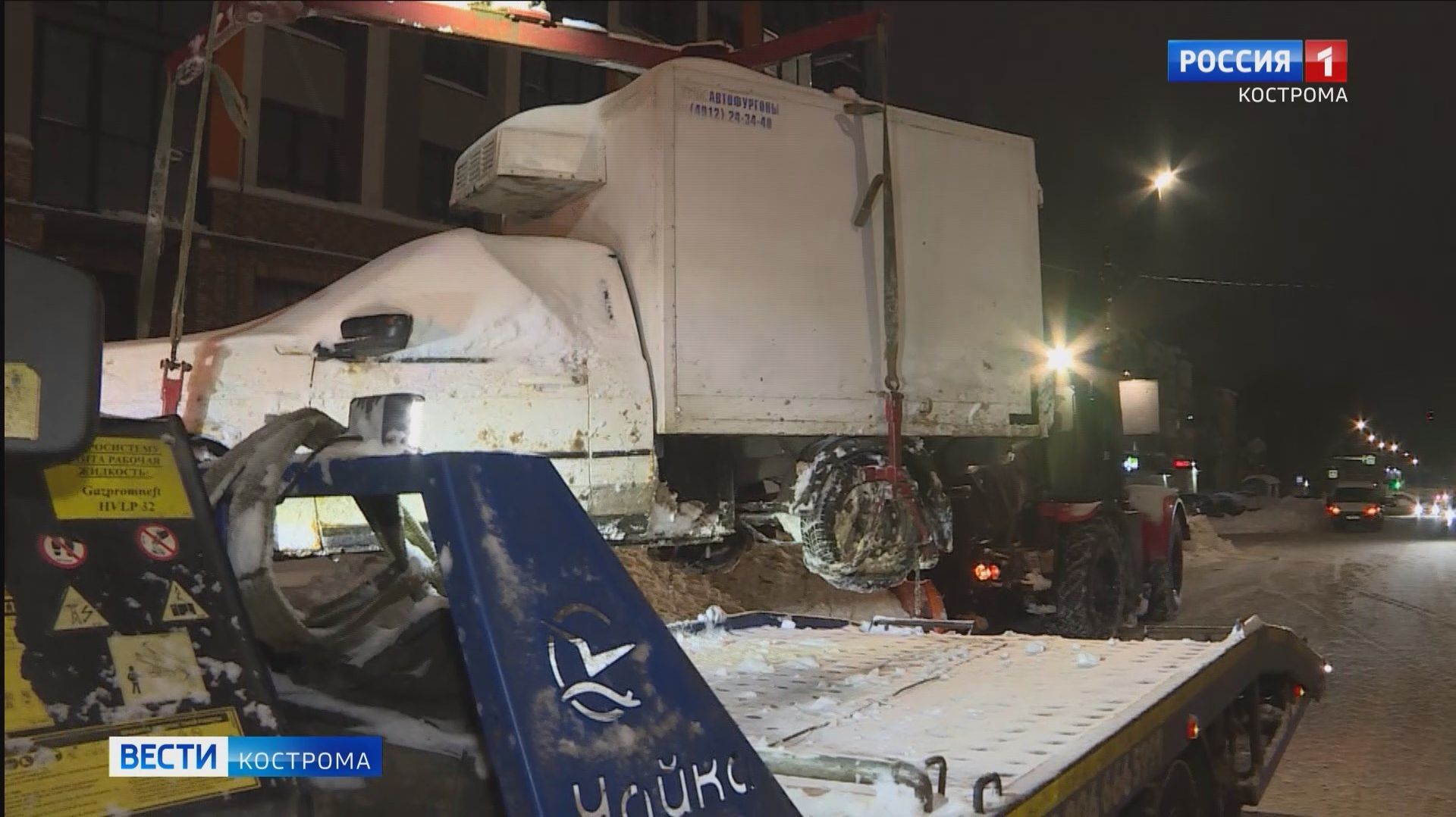 Костромские дорожники перемещают машины, которые мешают уборке снега. Этой ночью спецтехника впервые работала на улице Димитрова.