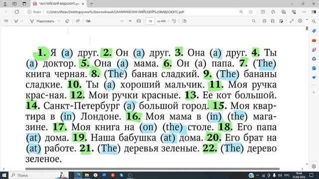 Курс английского часть 2 глагол TO BE Упражнение