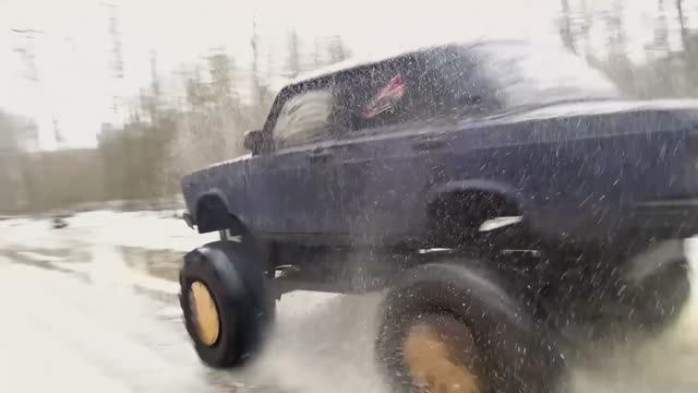 АнтиГелик против БигФута Ваз 2105 по заледеневшему торфяному болоту.