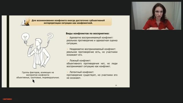 На вебинаре Ирина Григорьева, кандидат психологических наук, доцент кафедры общей психологии и психологии труда АНО ВО РосНОУ, практикующий психолог, рассказала, как конструктивно выстраивать поведение в конфликтных ситуациях, сохранять эмоциональное равновесие и не переносить рабочие разногласия в личную жизнь.