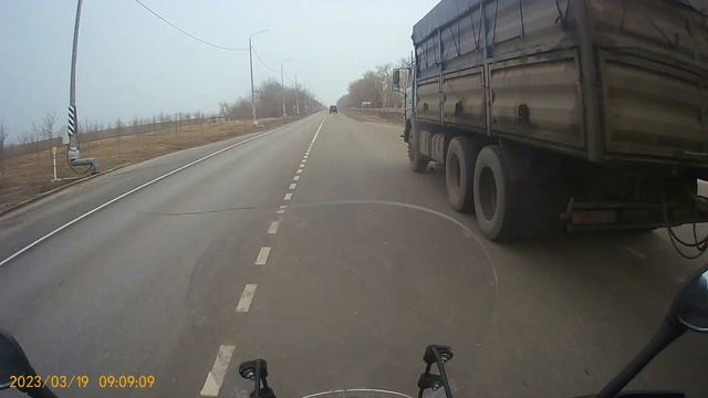 Камазист тянул до последнего, вот молодец пропустил.