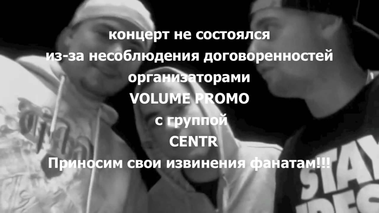23 апреля 2011 должен был состояться концерт группы CENTR в городе Мурманск, в клубе Магнит. Концерт был отменен, из-за несоблюдения организаторами договоренностей с артистами. Приносим свои извинения фанатам группы CENTR! http://vkontakte.ru/event25921260 Сайт - http://centrgroup.ru VK - http://vk.com/centrgroupru Twitter - http://twitter.com/centr Odnoklassniki - http://ok.ru/CENTR YouTube - http://youtube.com/CENTR Google+ - http://plus.google.com/+CENTR Facebook - http://facebook.com/centrgroupru