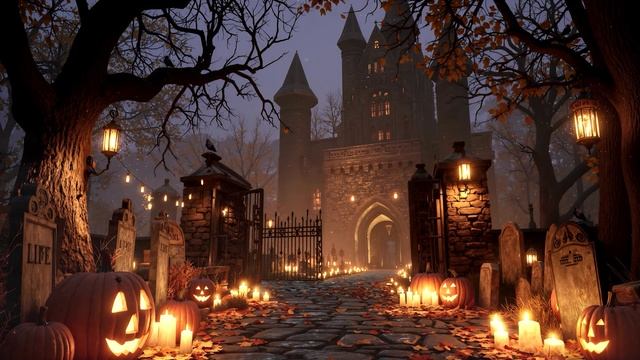 🎃👻 Осенняя атмосфера Хэллоуина | Жутковатая ночь в замке с привидениями, тыквами и свечами