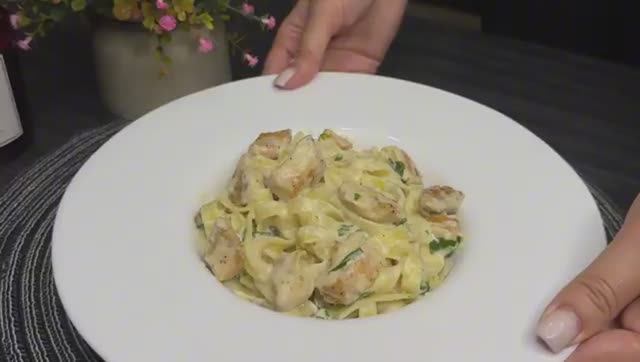 🙄_Подписывайтесь на мой_ Телеграм-канал ► https://t.me/vkucnotak Быстрая паста с курицей — невероятно вкусно и просто! Идеальный ужин всего за 15 минут. 350 г куриного филе 1 зубчик чеснока 1 ст. л. муки 5 г петрушки 300 мл сливок (20%) 20 г сливочного масла 300–400 мл воды 10 г пармезана