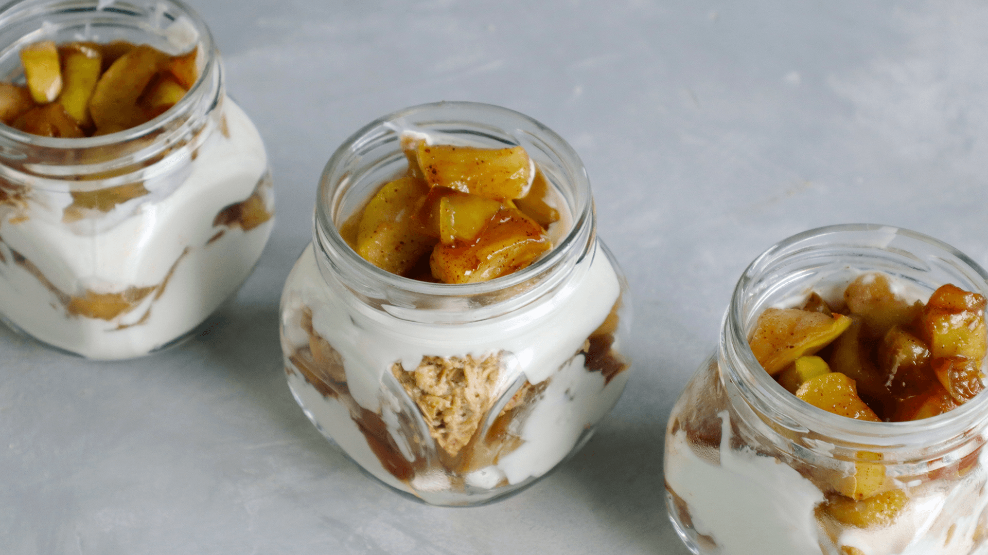 Ингредиенты: ✔Овсяные хлопья - 90 г. ✔Мука пшеничная - 25 г. ✔Сахар - 25 г. ✔Яйца –1 шт. ✔Яблоки - 2 шт. ✔Сахар - 25 гр. ✔Сливочное масло - 10 гр. ✔Корица ✔Мягкий творог Приготовление: Овсяные хлопья слегка измельчу в блендере. Соединяю Хлопья, муку, сахар, соль, перемешиваю добавляю яйцо, перемешиваю. Противень застелила пергаментом, формирую печенье и выпекаю в разогретой до 180 градусов духовке 12-15 минут. Яблоки лучше взять кислые, нарезаю на произвольные кусочки. Сливочное масло растопим, добавляем яблоки, сахар, корицу. И теперь на среднем огне, обжариваю яблоки до готовности. Кусочки должны стать мягкие, но держать форму, сахар растопиться и распределиться по яблокам. Перекладываем в тарелку и даем остыть. В качестве крема буду использовать мягкий творог. Сахар не добавляю, так как и в печенье и в яблоках сахара достаточно. Беру банки. Первым слоем выкладываю печенье, затем мягкий творог, затем яблоки, и так несколько слоев. Десерт будет вкуснее когда немного постоит в холодильнике, но и сейчас уже очень вкусно. Такие баночки очень удобно брать с собой на природу.