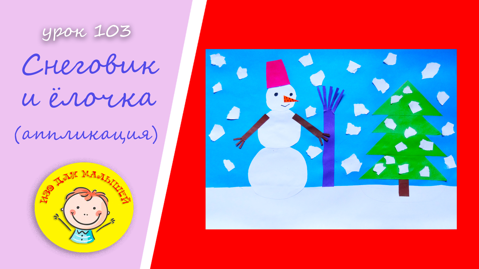 СНЕГОВИК И ЕЛОЧКА аппликация из цветной бумаги. УРОК 103. Тема: "снеговик елочка"- аппликация