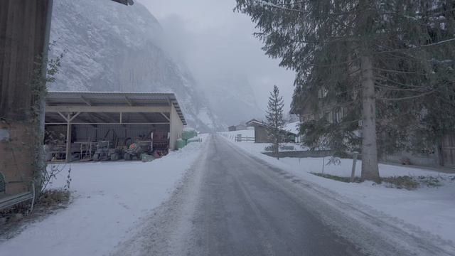 Спокойная прогулка по живописной деревне Лаутербруннен в Швейцарии, любуясь потрясающими зимними пейзажами во время снегопада. Спокойная атмосфера и очаровательные виды перенесут вас в состояние безмятежности, пока мы бродим по очаровательным улицам и любуемся захватывающими горными видами. Это видео — идеальный способ расслабиться и отдохнуть после напряженного дня или просто насладиться моментом умиротворения. Приходите и насладитесь красотой Лаутербруннена зимой.