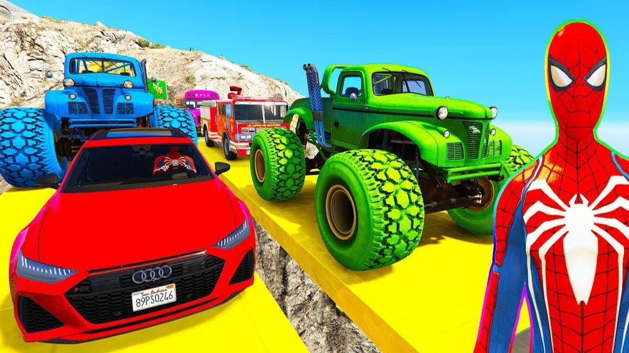 ЧЕЛОВЕК-ПАУК МАШИНКИ СУПЕР ГОНКИ Челлендж на МЕГА-Рампе! СУПЕРГЕРОИ и Сервисные Машины