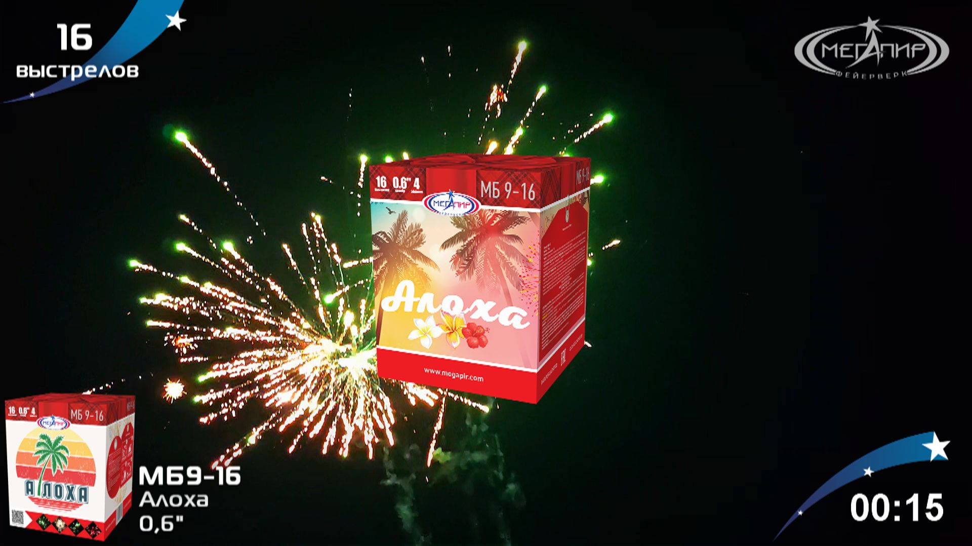 Батарея салютов 16 залпов Алоха МБ9-16